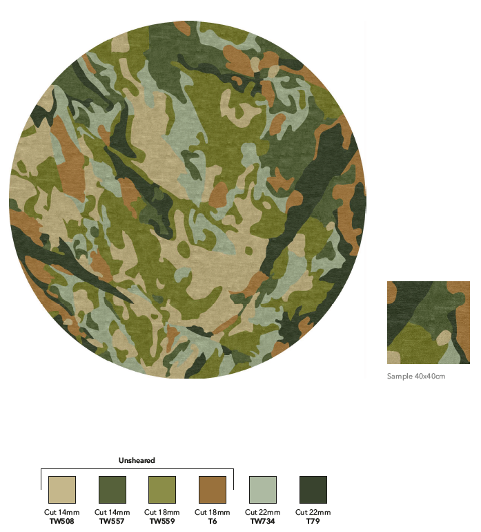 Bosrijk, robuust, bijzonder en vooral gemaakt met vakmanschap en oog voor detail: carpet “Lodge”. Een ontwerp van Hans Kuijten, gemaakt in samenwerking met Indivipro. Lodge is een robotufted tapijt gemaakt van Eucalyptus en Nieuw-Zeelandse wol.